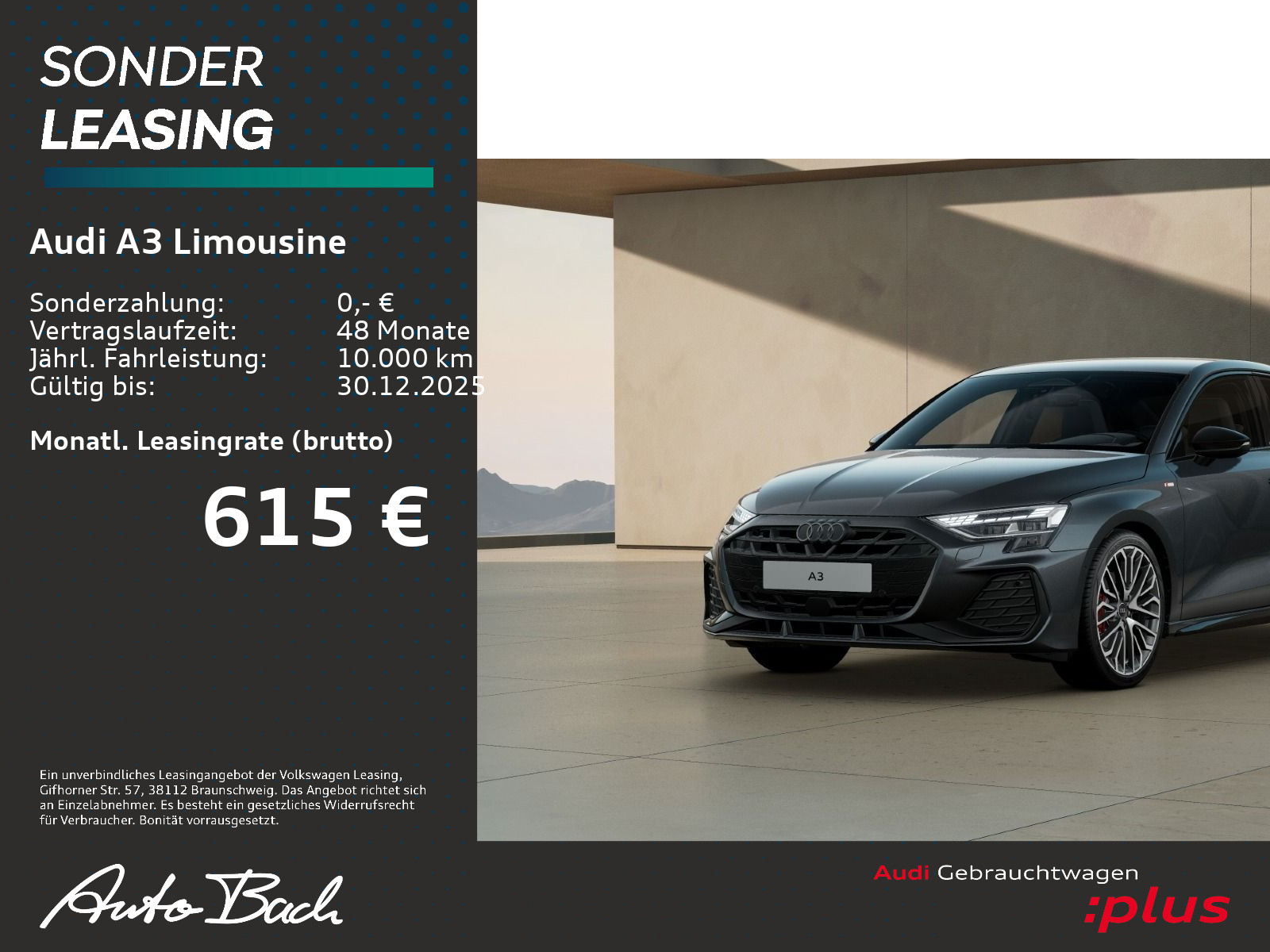 Betriebserlaubnis Nachtrag, Assistenzpaket Schutz- und Warnsysteme, Nichtraucherausführung, Riemenstartergenerator RSG 48V 110-250 A, Doppelton-Signalhorn, Licht-/Regensensor, Tagfahrlicht, Audi pre sense front, Start-Stop-System, Reifendruck-Kontrollanzeige, Schalt-/Wählhebelknauf, USB-Anschlüsse mit Ladefunktion im Fond, Geschwindigkeitsbegrenzungsanlage, Spurverlassenswarnung inklusive Notfallassistent, "Basis", Mittelarmlehne vorn, Kopfstützen vorn, Folienbeklebung, Außenspiegel Fahrerseite asphärisch, Beifahrerseite konvex, UWB fähiges Land und Trägerfrequenz 433,92 bis 434,42Mhz, Abgaskonzept, WLTP3 M1, N1-I//EU6EB, Airbags vorn, Beifahrerairbag deaktivierbar, Modul Boden hinten Ausführung 2, Kindersicherung elektrisch betätigt, Ausweichassistent und Abbiegeassistent, Wärmeschutzverglasung Frontscheibe, Kennzeichenträger hinten (ECE), Kopfstützen hinten (3 Stück), Dachreling, Entfall, Vordersitze manuell einstellbar, Kindersitzbefestigung i-Size-konform auf Beifahrerseite und äußeren Fondsitzen, Top Tether für äußere Fondsitze, Entfall Leistungs-/Technologie-Schriftzug, Aufkleber/Schilder, englisch-deutsch, Stoßfänger S line, Fahrzeugklassen-Differenzierung-8Y0/8YF-, Serienkraftstoff-Erstbefüllung, Frontantrieb, Verbandmaterial mit Warndreieck, Bordwerkzeug, Gurtanlegekontrolle mit Sitzbelegungserkennung hinten, Reifenreparaturset, Aktivkohlebehälter (EVAP), spezielles Typschild EU, Kraftstoffsystem Otto-Einspritzer, BRS für Fahrzeuge mit E-Antrieb (ESC und eBKV), Standard-Klimazonen, Bordliteratur in Deutsch, Fußmatten vorn und hinten, Standardabgasanlage, 4-Lenker-Hinterachse, Mit spez.Schilder/Aufkleber/ Sicherheitszertifikate für Deutschland, Mild-Hybrid, Einbau Differenzierung für Getriebe"DQ 200" -- Fahrzeugteile --, Radstand, Stabilisator hinten, Stabilisator vorn, Instrumenteneinsatz, Anzeige in km/h, Digitaler Radioempfang, Kamerabasierte Verkehrszeichenerkennung, Mit Multifunktionskamera, Serviceanzeige 30000 km oder 2 Jahre ( variabel ), Wartungsintervallverlängerung, 4 Zyl.Ottomotor 1,5L Aggr. 05E.D, gesetzlicher Notruf, Batterie/Generator Kapazität Standard, Transportschutz (Ausf.1), Motorabdeckung, Mit UNECE CS&SU, Linkslenker, Mit Speedlimiter (LIM), Sportlimousine, Kältemittel R1234yf, Batterie 380A (59Ah) EFB+, Kreuzungsassistent, Datenmodul Europa, MMI Radio plus, Ottomotor, Audi connect Notruf & Service mit Audi connect Remote & Control, Reifen 235/35 R19 91Y xl, Dämpfung vorn, 7-Gang-Automatikgetriebe, Fahrzeuge mit besonderen Produktaufwer- tungsmaßnahmen, N.N.N. Ausführung 1, Räder der Audi Sport / Quattro GmbH, Vorbereitung für Functions on Demand, Variante Grundausstattung, Abwicklung Serie, without Service Package, Regionscode " ECE " für Radio, Aufmerksamkeits- und Müdigkeitserkennung, ECO-Funktion, 4-Zyl. Ottomotor 1,5 L/110KW TSI Grundmotor ist: TJ7/N09/T9F/T57, Typprüfland Deutschland, S line, Audi AG, Rechtsverkehr, Serienqualität, Landesverkaufsprogramm Deutschland, Interieurpaket 7 ( Nur für AU/PO ), Assistenzpaket Fahren und Parken plus, MMI experience plus, Klimatisierungspaket plus, Komfortpaket 2 ( Nur für AU/BY ), Audi phone box, SONOS Premium Soundsystem mit 3D-Klang, Audi virtual cockpit plus, LED-Heckleuchten mit dynamischem Blinklicht, LED-Scheinwerfer, Fernlichtassistent, Parkassistent plus mit Einparkhilfe mit Umgebungsanzeige, MMI Navigation plus mit MMI touch, 4-Wege-Lendenwirbelstütze für die Vordersitze, Armauflagen in Kunstleder, Diebstahlwarnanlage, Außenspiegel elektrisch einstell-, beheiz- und anklappbar, beidseitig automatisch abblendend, Dachhimmel in Stoff schwarz, Embleme, Außenspiegelgehäuse schwarz, Seitenairbags vorn und hinten mit Kopfairbagsystem und Interaktionsairbag vorn, Dekoreinlage Aluminium Spektrum dunkel, Räder Audi Sport, Vielspeichen S-Design, anthrazitschwarz, glanzgedreht, 8,0Jx19, Reifen 235/35 R19, Optikpaket schwarz plus, Innenspiegel automatisch abblendend, rahmenlos, Komfortschlüssel mit Safelock, Komfortöffnung Gepäckraumklappe, Sitzheizung vorn, Rücksitzlehne umklappbar, Sportkontur-Lederlenkrad, 3-Speichen, unten abgeflacht mit Multifunktion plus und Schaltwippen, Audi drive select, Scheibenbremsen hinten, 15 Zoll, Bremssättel rot lackiert, Scheibenbremsen vorn, 16 Zoll, Bremssättel rot lackiert, Radschrauben diebstahlhemmend, Progressivlenkung, Sportfahrwerk für 19-Zoll-Räder, Sondersteuerung VP, Audi Neuwagen-ReifengarantieDie angegebenen Verbrauchsangaben beziehen sich auf WLTP-Werte. Zwischenverkauf und Irrtümer für dieses Angebot sind ausdrücklich vorbehalten. Ausschlaggebend sind einzig und allein die Vereinbarungen in der Auftragsbestätigung oder im Kaufvertrag. Den genauen Ausstattungsumfang, die genauen Kilometer und den Verkaufspreis erhalten Sie von unserem Verkaufspersonal. Bitte kontaktieren Sie uns.