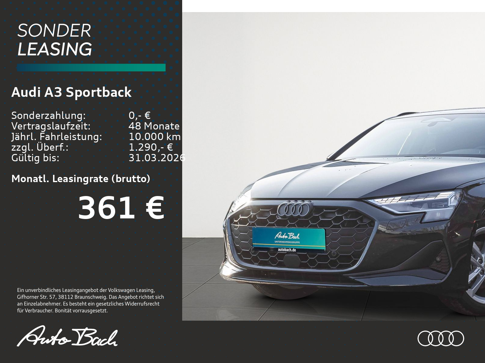 Auftrags-Nr. ABDO94 WZ, schwarz-schwarz-felsgrau/schwarz-schwarz /schwarz/schwarz, Vorbereitung für Anhängevorrichtung, Sportkontur-Lederlenkrad, 3-Speichen, unten abgeflacht mit Multifunktion plus und Schaltwippen, Entfall Modellkennzeichnung am Heck, Dachreling in Schwarz, Wärmeschutz- und Akustikverglasung Frontscheibe mit grauem Colorstreifen, Optikpaket schwarz plus, Außenspiegelgehäuse schwarz, Dekoreinlage Textilgewebe Impressum schwarz, Parkassistent plus mit Einparkhilfe mit Umgebungsanzeige, Adaptiver Geschwindigkeitsassistent, Audi Soundsystem, Betriebserlaubnis Nachtrag, Räder, 5-Parallelspeichen 8,0Jx17, Reifen 225/45 R17, Mobilfunk-Signalverstärker Typ 1, Audi connect Navigation & Infotainment plus, Audi Application Store und Smartphone-Interface, Interieur S mit Sportsitzen, Stoff/Kunstleder-Kombination schwarz, LED-Scheinwerfer und LED-Heckleuchten mit dynamischem Blinklicht Heck, Klimatisierungspaket plus, Infotainmentpaket Connectivity, Assistenzpaket Fahren und Parken plus, Komfortpaket plus, Sonnenschutzverglasung abgedunkelt, Ambiente-Lichtpaket plus, Halteassistent, Businesspaket plus, Audi Neuwagen-Reifengarantie, Steuerungsnummer 8, Manhattangrau Metallic, Stabilisator vorn, Radstand, Stabilisator hinten, Einbau Differenzierung für Getriebe"DQ 200" -- Fahrzeugteile --, Mild-Hybrid, Mit spez.Schilder/Aufkleber/ Sicherheitszertifikate für Deutschland, 4-Lenker-Hinterachse, Standardabgasanlage, Fußmatten vorn und hinten, Bordliteratur in Deutsch, Standard-Klimazonen, Standard-Klimazonen, Kraftstoffsystem Otto-Einspritzer, BRS für Fahrzeuge mit E-Antrieb (ESC und eBKV), Aktivkohlebehälter (EVAP), spezielles Typschild EU, Reifenreparaturset, Gurtanlegekontrolle mit Sitzbelegungserkennung hinten, Serienfahrwerk, Scheibenbremsen hinten, 15 Zoll, Elektromechanische Servolenkung, Radschrauben Standard, Bordwerkzeug, Bordwerkzeug, Verbandmaterial mit Warndreieck, Frontantrieb, Serienkraftstoff-Erstbefüllung, Scheibenbremsen vorn, 15 Zoll, Scheibenbremsen vorn, 15 Zoll, Fahrzeugklassen-Differenzierung-8Y0/8YF-, Fahrzeugklassen-Differenzierung-8Y0/8YF-, Fahrzeugklassen-Differenzierung-8Y0/8YF-, Stoßfänger advanced, Aufkleber/Schilder, englisch-deutsch, Aufkleber/Schilder, englisch-deutsch, Kennzeichenträger hinten (ECE), Kindersitzbefestigung i-Size-konform auf Beifahrerseite und äußeren Fondsitzen, Top Tether für äußere Fondsitze, Kindersitzbefestigung i-Size-konform auf Beifahrerseite und äußeren Fondsitzen, Top Tether für äußere Fondsitze, Kindersitzbefestigung i-Size-konform auf Beifahrerseite und äußeren Fondsitzen, Top Tether für äußere Fondsitze, Vordersitze manuell einstellbar, Rücksitzlehne umklappbar, Kopfstützen hinten (3 Stück), Sitzheizung vorn, Manuelle Gepäckraumklappe, Ausweichassistent und Abbiegeassistent, Kindersicherung elektrisch, Kindersicherung elektrisch, Innenspiegel automatisch abblendend, rahmenlos, Modul Boden hinten Ausführung 5, Airbags vorn, Beifahrerairbag deaktivierbar, Abgaskonzept, WLTP3 M1, N1-I//EU6EB, Abgaskonzept, WLTP3 M1, N1-I//EU6EB, UWB fähiges Land und Trägerfrequenz 433,92 bis 434,42Mhz, Dachkantenspoiler, Außenspiegel Fahrerseite asphärisch, Beifahrerseite konvex, Folienbeklebung, Folienbeklebung, Kopfstützen vorn, Kopfstützen vorn, Seitenairbags vorn mit Kopfairbagsystem und Interaktionsairbag vorn, Mittelarmlehne vorn, Lenkradapplikation Chromoptik, S-Emblem, Lenkradgriffe perforiertes Leder und Kontrastnaht, "Basis", Spurverlassenswarnung mit Notfallassistent, Dachhimmel Stoff schwarz, Außenspiegel elektrisch einstell-, beheiz- und anklappbar, beidseitig automatisch abblendend, Geschwindigkeitsbegrenzungsanlage, Geschwindigkeitsbegrenzungsanlage, Geschwindigkeitsbegrenzungsanlage, Wegfahrsperre elektronisch, USB-Anschlüsse mit Ladefunktion im Fond, USB-Anschlüsse mit Ladefunktion im Fond, Schalt-/Wählhebelknauf, Armauflage Kunstleder, Reifendruck-Kontrollanzeige, Start-Stop-System, 4-Wege-Lendenwirbelstütze für die Vordersitze, MMI Navigation plus mit MMI touch, MMI Navigation plus mit MMI touch, MMI Navigation plus mit MMI touch, MMI Navigation plus mit MMI touch, Fernlichtassistent, LED-Scheinwerfer, Notbremsassistent vorn, Tagfahrlicht, Heckscheiben-Wisch-Waschanlage mit Intervallschaltung, Licht-/RegensensorDie angegebenen Verbrauchsangaben beziehen sich auf WLTP-Werte. Zwischenverkauf und Irrtümer für dieses Angebot sind ausdrücklich vorbehalten. Ausschlaggebend sind einzig und allein die Vereinbarungen in der Auftragsbestätigung oder im Kaufvertrag. Den genauen Ausstattungsumfang, die genauen Kilometer und den Verkaufspreis erhalten Sie von unserem Verkaufspersonal. Bitte kontaktieren Sie uns.