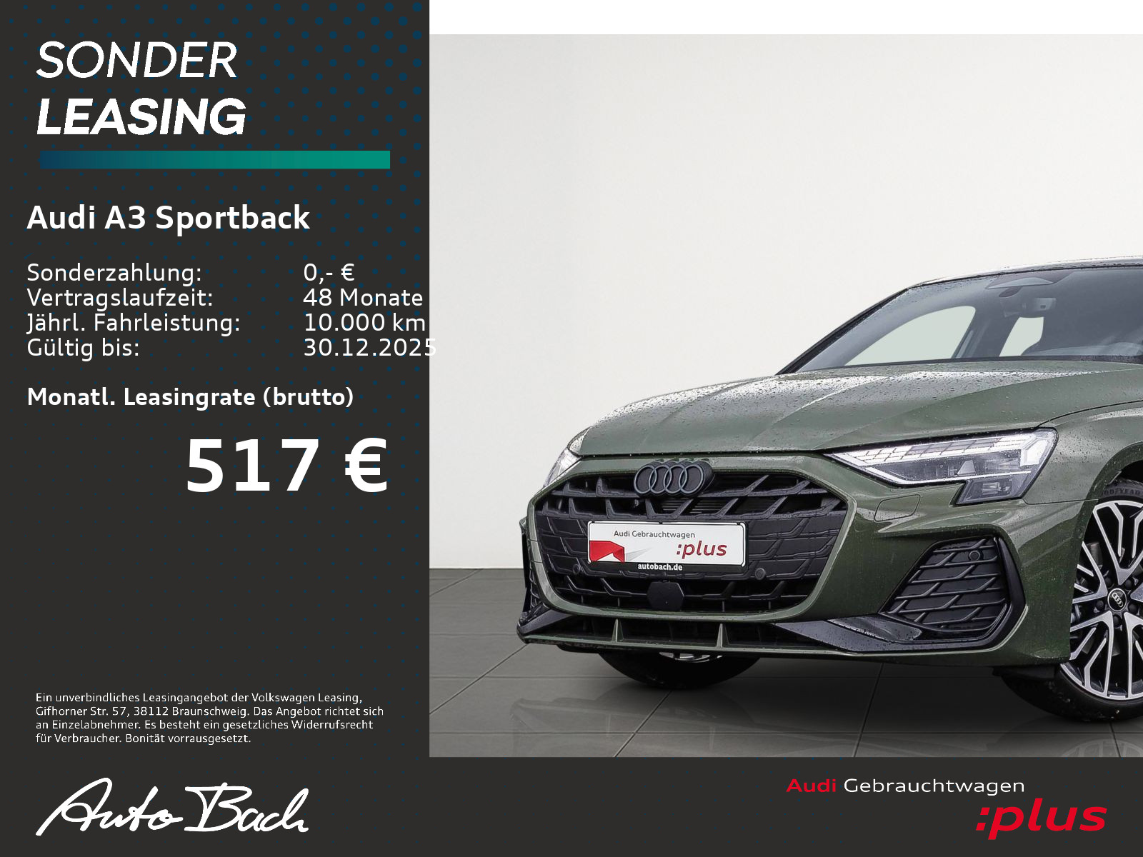 Betriebserlaubnis Nachtrag, Abwicklung Serie, Abgaskonzept, WLTP3 M1, N1-I//EU6EB, Airbags vorn, Beifahrerairbag deaktivierbar, Modul Boden hinten Ausführung 5, Ausweichassistent und Abbiegeassistent, Wärmeschutzverglasung Frontscheibe, Kennzeichenträger hinten (ECE), Kopfstützen hinten (3 Stück), Dachreling, Entfall, Vordersitze manuell einstellbar, Aufkleber/Schilder, englisch-deutsch, Stoßfänger S line, Fahrzeugklassen-Differenzierung-8Y0/8YF-, Serienkraftstoff-Erstbefüllung, Frontantrieb, Verbandmaterial mit Warndreieck, Bordwerkzeug, Radschrauben Standard, Scheibenbremsen hinten, 15 Zoll, Gurtanlegekontrolle mit Sitzbelegungserkennung hinten, Reifenreparaturset, Aktivkohlebehälter (EVAP), spezielles Typschild EU, Kraftstoffsystem Otto-Einspritzer, BRS für Fahrzeuge mit E-Antrieb (ESC und eBKV), Standard-Klimazonen, Bordliteratur in Deutsch, Fußmatten vorn und hinten, Standardabgasanlage, 4-Lenker-Hinterachse, Mit spez.Schilder/Aufkleber/ Sicherheitszertifikate für Deutschland, Mild-Hybrid, Einbau Differenzierung für Getriebe"DQ 200" -- Fahrzeugteile --, Radstand, Stabilisator hinten, Stabilisator vorn, Digitaler Radioempfang, Kamerabasierte Verkehrszeichenerkennung, Mit Multifunktionskamera, Wartungsintervallverlängerung, 4 Zyl.Ottomotor 1,5L Aggr. 05E.D, Batterie/Generator Kapazität Standard, Transportschutz (Ausf.1), Motorabdeckung, Linkslenker, Sportback, Kältemittel R1234yf, Batterie 380A (59Ah) EFB+, Datenmodul Europa, MMI Radio plus, Ottomotor, Audi connect Notruf & Service mit Audi connect Remote & Control, Reifen 235/35 R19 91Y xl, Dämpfung vorn, 7-Gang-Automatikgetriebe, Fahrzeuge mit besonderen Produktaufwer- tungsmaßnahmen, N.N.N. Ausführung 1, Räder der Audi Sport / Quattro GmbH, Vorbereitung für Functions on Demand, Variante Grundausstattung, Nichtraucherausführung, Riemenstartergenerator RSG 48V 110-250 A, Doppelton-Signalhorn, Licht-/Regensensor, Heckscheiben-Wisch-Waschanlage mit Intervallschaltung, Tagfahrlicht, Start-Stop-System, Reifendruck-Kontrollanzeige, Schalt-/Wählhebelknauf, USB-Anschlüsse mit Ladefunktion im Fond, Wegfahrsperre elektronisch, Geschwindigkeitsbegrenzungsanlage, "Basis", Mittelarmlehne vorn, Seitenairbags vorn mit Kopfairbagsystem und Interaktionsairbag vorn, Kopfstützen vorn, Folienbeklebung, S-Dachkantenspoiler, Außenspiegel Fahrerseite asphärisch, Beifahrerseite konvex, UWB fähiges Land und Trägerfrequenz 433,92 bis 434,42Mhz, Matrix LED-Scheinwerfer mit dynamischer Lichtinszenierung und dynamischem Blinklicht, Interieurausstattung 11, Komfortpaket 2 ( Nur für Audi / Bentley / Nutzfahrzeuge ), Adaptiver Geschwindigkeitsassistent, Notbremsassistent vorn, Proaktiver Insassenschutz Front, Seite und Heck, Armauflage Kunstleder, Dachhimmel Stoff schwarz, Spurverlassenswarnung mit Notfallassistent, Lenkradapplikation Chromoptik, S-Emblem,Lenkradgriffe perforiertes Leder und Kontrastnaht, Räder Audi Sport, Vielspeichen S-Design,anthrazitschwarz, glanzgedreht, 8,0Jx19, Reifen 235/35 R19, Kindersicherung elektrisch, Rücksitzlehne geteilt umklappbar, Kindersitzbefestigung i-Size-konform aufBeifahrerseite und äußeren Fondsitzen, Top Tether für äußere Fondsitze, Entfall Modellkennzeichnung am Heck, Instrumenteneinsatz, Anzeige in KM/H, Serviceanzeige 30000 km oder 2 Jahre ( variabel ), Mikrofaser Dinamica/Kunstleder-Kombination mit Rautensteppung und S-Emblem, Gesetzlicher Notruf, Steuerung SWIN, Manueller Geschwindigkeitsbegrenzer, Head-up-Display, Querverkehrassistent vorn, Mobilfunk-Signalverstärker Typ 1, 4-Zyl. Ottomotor 1,5 L/110 KW TSI Grundmotor ist: TJ7/N09/T9F/T57/T0D, Regionscode " ECE " für Radio, Aufmerksamkeits- und Müdigkeitserkennung, ECO-Funktion, Typprüfland Deutschland, S line, Audi AG, Rechtsverkehr, Serienqualität, Businesspaket plus, Landesverkaufsprogramm Deutschland, Assistenzpaket Schutz- und Warnsysteme plus, Assistenzpaket Fahren und Parken plus, MMI experience pro, Klimatisierungspaket plus, Audi phone box, SONOS Premium Soundsystem mit 3D-Klang, Audi virtual cockpit plus, Scheinwerfer-Reinigungsanlage, LED-Heckleuchten mit dynamischer Lichtinszenierung und dynamischem Blinklicht, Parkassistent plus mit Einparkhilfe mit Umgebungsanzeige, Spurwechselwarnung mit Ausstiegswarnung und Querverkehrassistent hinten, MMI Navigation plus mit MMI touch, Dekoreinlage Mikrofaser Dinamica schwarz, 4-Wege-Lendenwirbelstütze für die VordersitzeDie angegebenen Verbrauchsangaben beziehen sich auf WLTP-Werte. Zwischenverkauf und Irrtümer für dieses Angebot sind ausdrücklich vorbehalten. Ausschlaggebend sind einzig und allein die Vereinbarungen in der Auftragsbestätigung oder im Kaufvertrag. Den genauen Ausstattungsumfang, die genauen Kilometer und den Verkaufspreis erhalten Sie von unserem Verkaufspersonal. Bitte kontaktieren Sie uns.