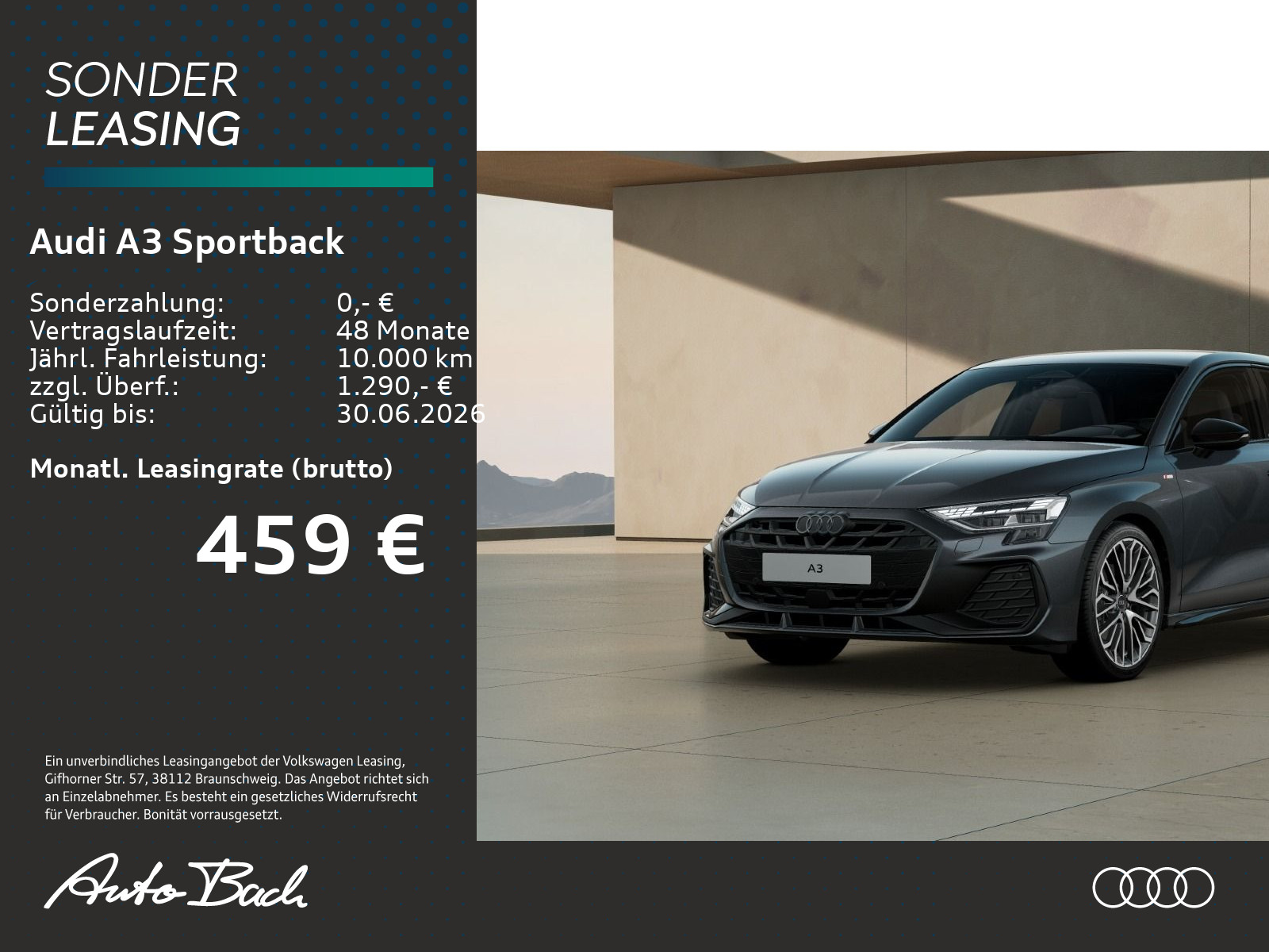Auftrags-Nr. V_ACHM79 WZ, schwarz-schwarz-felsgrau/schwarz-schwarz /schwarz/schwarz, Sportfahrwerk für 19-Zoll-Räder, Scheibenbremsen vorn, 16 Zoll, Audi drive select, Sportkontur-Lederlenkrad, 3-Speichen, unten abgeflacht mit Multifunktion plus und Schaltwippen, Fahrersitz elektrisch einstellbar, Räder Audi Sport, Vielspeichen S-Design, anthrazitschwarz, glanzgedreht, 8,0Jx19, Reifen 235/35 R19, Komfortöffnung Gepäckraumklappe, Optikpaket schwarz plus, Dekoreinlage Aluminium Spektrum dunkel, Außenspiegelgehäuse schwarz, Parkassistent plus mit Einparkhilfe mit Umgebungsanzeige, Adaptiver Geschwindigkeitsassistent, Audi Soundsystem, Betriebserlaubnis Nachtrag, Mobilfunk-Signalverstärker Typ 1, Audi connect Navigation & Infotainment plus, Audi Application Store und Smartphone-Interface, Interieur S mit Sportsitzen, Stoff/Kunstleder-Kombination schwarz, LED-Scheinwerfer und LED-Heckleuchten mit dynamischem Blinklicht Heck, Komfortpaket, Klimatisierungspaket plus, Infotainmentpaket Connectivity, Assistenzpaket Fahren und Parken plus, Sonnenschutzverglasung abgedunkelt, Ambiente-Lichtpaket pro, Halteassistent, Businesspaket plus, Audi Neuwagen-Reifengarantie, Steuerungsnummer 8, Daytonagrau Perleffekt, Stabilisator vorn, Radstand, Stabilisator hinten, Einbau Differenzierung für Getriebe"DQ 200" -- Fahrzeugteile --, Mild-Hybrid, Mit spez.Schilder/Aufkleber/ Sicherheitszertifikate für Deutschland, 4-Lenker-Hinterachse, Standardabgasanlage, Fußmatten vorn und hinten, Bordliteratur in Deutsch, Standard-Klimazonen, Standard-Klimazonen, Kraftstoffsystem Otto-Einspritzer, BRS für Fahrzeuge mit E-Antrieb (ESC und eBKV), BRS für Fahrzeuge mit E-Antrieb (ESC und eBKV), Aktivkohlebehälter (EVAP), spezielles Typschild EU, Reifenreparaturset, Gurtanlegekontrolle mit Sitzbelegungserkennung hinten, Scheibenbremsen hinten, 15 Zoll, Elektromechanische Servolenkung, Radschrauben Standard, Bordwerkzeug, Bordwerkzeug, Verbandmaterial mit Warndreieck, Frontantrieb, Serienkraftstoff-Erstbefüllung, Serienkraftstoff-Erstbefüllung, Fahrzeugklassen-Differenzierung-8Y0/8YF-, Fahrzeugklassen-Differenzierung-8Y0/8YF-, Stoßfänger S line, Aufkleber/Schilder, englisch-deutsch, Aufkleber/Schilder, englisch-deutsch, Modellkennzeichnung am Heck, Kennzeichenträger hinten (ECE), Kindersitzbefestigung i-Size-konform auf Beifahrerseite und äußeren Fondsitzen, Top Tether für äußere Fondsitze, Kindersitzbefestigung i-Size-konform auf Beifahrerseite und äußeren Fondsitzen, Top Tether für äußere Fondsitze, Kindersitzbefestigung i-Size-konform auf Beifahrerseite und äußeren Fondsitzen, Top Tether für äußere Fondsitze, Rücksitzlehne umklappbar, Dachreling, Entfall, Kopfstützen hinten (3 Stück), Sitzheizung vorn, Ausweichassistent und Abbiegeassistent, Wärmeschutzverglasung Frontscheibe, Kindersicherung elektrisch, Kindersicherung elektrisch, Innenspiegel abblendbar, Modul Boden hinten Ausführung 5, Airbags vorn, Beifahrerairbag deaktivierbar, Abgaskonzept, WLTP3 M1, N1-I//EU6EB, Abgaskonzept, WLTP3 M1, N1-I//EU6EB, UWB fähiges Land und Trägerfrequenz 433,92 bis 434,42Mhz, S-Dachkantenspoiler, Außenspiegel Fahrerseite asphärisch, Beifahrerseite konvex, Folienbeklebung, Folienbeklebung, Kopfstützen vorn, Kopfstützen vorn, Seitenairbags vorn mit Kopfairbagsystem und Interaktionsairbag vorn, Mittelarmlehne vorn, Lenkradapplikation Chromoptik, S-Emblem, Lenkradgriffe perforiertes Leder und Kontrastnaht, "Basis", Spurverlassenswarnung mit Notfallassistent, Dachhimmel Stoff schwarz, Außenspiegel elektrisch einstell- und beheizbar, Geschwindigkeitsbegrenzungsanlage, Geschwindigkeitsbegrenzungsanlage, Geschwindigkeitsbegrenzungsanlage, Wegfahrsperre elektronisch, USB-Anschlüsse mit Ladefunktion im Fond, USB-Anschlüsse mit Ladefunktion im Fond, Schalt-/Wählhebelknauf, Armauflage Kunstleder, Reifendruck-Kontrollanzeige, Start-Stop-System, 4-Wege-Lendenwirbelstütze für die Vordersitze, MMI Navigation plus mit MMI touch, MMI Navigation plus mit MMI touch, MMI Navigation plus mit MMI touch, MMI Navigation plus mit MMI touch, Fernlichtassistent, LED-Scheinwerfer, Notbremsassistent vorn, Tagfahrlicht, Heckscheiben-Wisch-Waschanlage mit Intervallschaltung, Licht-/Regensensor, LED-Heckleuchten mit dynamischem BlinklichtDie angegebenen Verbrauchsangaben beziehen sich auf WLTP-Werte. Zwischenverkauf und Irrtümer für dieses Angebot sind ausdrücklich vorbehalten. Ausschlaggebend sind einzig und allein die Vereinbarungen in der Auftragsbestätigung oder im Kaufvertrag. Den genauen Ausstattungsumfang, die genauen Kilometer und den Verkaufspreis erhalten Sie von unserem Verkaufspersonal. Bitte kontaktieren Sie uns.