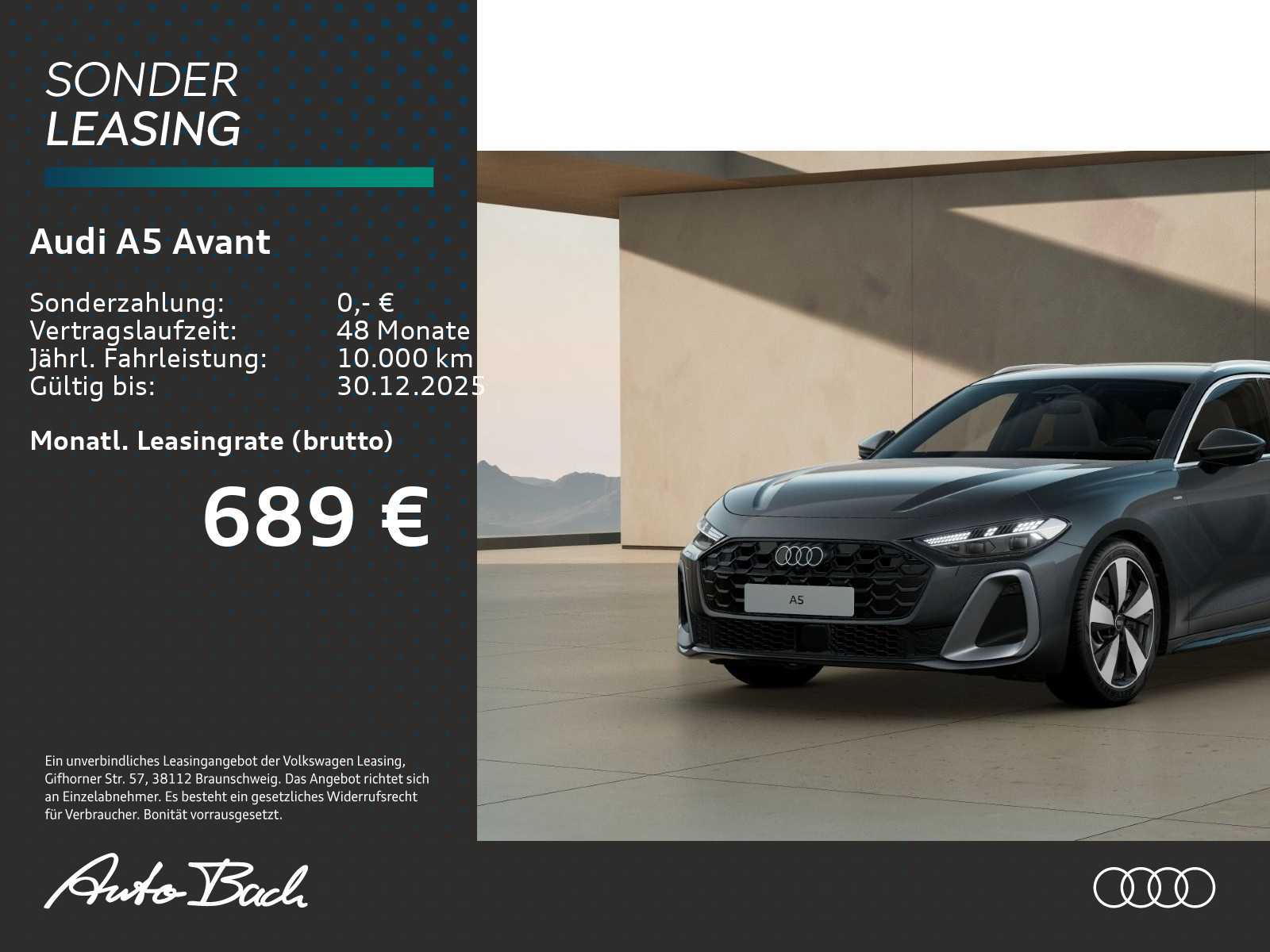 Auftrags-Nr. AAHB89 WZ, schwarz-schwarz-kardamombeige/ schwarz-schwarz/schwarz/schwarz, S-Sportfahrwerk, Vorbereitung für Anhängevorrichtung, Entfall Modellkennzeichnung am Heck, Vordersitze elektrisch einstellbar, Dekoreinlagen Aluminium matt gebürstet mit Linearprägung anthrazit, MMI experience plus, Audi Soundsystem, Telefonablage mit induktiver Ladefunktion und Mobilfunk-Koppelantenne, Räder, 5-Arm-Aero, schwarz, glanzgedreht, 8,0Jx19, Reifen 245/40 R19, Betriebserlaubnis Nachtrag, Komfort-Standklimatisierung, LTE-Unterstützung für Audi phone box, Tech plus, Interieur S line mit Sportsitzen Stoff schwarz, Exterieur S line, Sonnenschutzverglasung abgedunkelt, Ambiente-Lichtpaket plus, Sondersteuerung, Akustikverglasung Türscheiben vorn, Audi Neuwagen-Reifengarantie, Steuerungsnummer 8, Daytonagrau Perleffekt, Fertigungsablauf Standard, Gewichtsklasse Vorderachse Gewichtsbereich 10, Hybrid-Antriebssystem PHEV, Mit speziellem Aufkleber, Mit spez.Schilder/Aufkleber/ Sicherheitszertifikate für Deutschland, Kraftstoffbehälter, Hinterachse "Standard", Standardabgasanlage, Standardabgasanlage, Fußmatten vorn und hinten, Fußmatten vorn und hinten, Bordliteratur in Deutsch, Standard-Klimazonen, Standard-Klimazonen, Kraftstoffsystem Otto-Direkteinspritzung (FSI), spezielles Typschild EU, Reifenreparaturset, Sitzbelegungserkennung, Projektionsleuchte in den Außenspiegeln, Scheibenbremsen hinten, 17 Zoll, Scheibenbremsen vorn, 18 Zoll, Radschrauben Standard, Radschrauben Standard, Verbandmaterial mit Warndreieck und Warnweste, Einbauteile f.4 Zyl.Motore, quattro, Sportlederlenkrad, 3-Speichen, oben und unten abgeflacht mit Multifunktion und Schaltwippen, Serienkraftstoff-Erstbefüllung, E-Motor (Hybrid) Systemleistung 220KW Aggr.0ED.D, Lenkradeinstellung manuell, Digitaler Schlüssel, Audi drive select, Stoßfänger S line, Aufkleber/Schilder, englisch-deutsch, Aufkleber/Schilder, englisch-deutsch, Kennzeichenträger hinten (ECE), Kindersitzbefestigung i-Size auf der Beifahrerseite und i-Size und Top Tether auf den äußeren Fondsitzen, Netztrennwand, Netztrennwand, Dachreling Aluminiumoptik, Dachreling Aluminiumoptik, Sitzheizung vorn, Sitzheizung vorn, Gepäckraumklappe elektrisch öffnend und schließend, Ausweichassistent und Abbiegeassistent vorn, Wärmeschutz- und Akustikverglasung Frontscheibe, Kindersicherung, elektrisch betätigt, Kindersicherung, elektrisch betätigt, Innenspiegel automatisch abblendend, Airbags vorn, Beifahrerairbag deaktivierbar, Abgaskonzept, WLTP3 M1, N1-I//EU6EB, Fensterzierleisten Aluminiumoptik, Fensterzierleisten Aluminiumoptik, UWB fähiges Land und Trägerfrequenz 433,92 bis 434,42Mhz, Fahrzeugklassen-Differenzierung-8WH/8WK-, Heckspoiler, Außenspiegel Fahrerseite asphärisch, Beifahrerseite asphärisch, Beklebung RdW, Beklebung RdW, Insassenerkennung im Fond, Kopfstützen vorn, Kopfstützen vorn, Seitenairbags vorn und hinten mit Kopfairbagsystem und Interaktionsairbag vorn, Komfortmittelarmlehne vorn, Lenkradapplikation Chromoptik, S-Emblem, Lenkradgriffe perforiertes Leder und Kontrastnaht, Außenspiegelgehäuse in Wagenfarbe, "Basis", Spurverlassenswarnung mit Notfallassistent, Türgriffe in Wagenfarbe, Dachhimmel Stoff schwarz, Außenspiegel elektrisch einstell-, beheizbar und anklappbar, beidseitig automatisch abblendend, Außenspiegel elektrisch einstell-, beheizbar und anklappbar, beidseitig automatisch abblendend, Ladekabel Mode 3 für öffentliches Laden 22 kW (AC), Spurwechsel- und Ausstiegswarnung, Querverkehrassistent hinten und Abbiegeassistent hinten, Wegfahrsperre elektronisch, Elektrische Luftzusatzheizung, Interieurelemente oben und unten mit Kontrastnaht, Reifendruck-Kontrollanzeige, 4-Wege-Lendenwirbelstütze für die Vordersitze, Navigationsgerät-High, Proaktiver Insassenschutz Front, Seite und Heck, Matrix-Funktion, Matrix-Funktion, Matrix LED-Scheinwerfer, Notbremsassistent vorn, Schlüssel für Schließsystem mit Fernbedienung, Adaptiver Geschwindigkeitsassistent, LED-Heckleuchten pro, Scheinwerfer-Reinigungsanlage, Doppelton-Signalhorn, Doppelton-Signalhorn, Komfortpaket plus, Klimatisierungspaket, Funktionspaket Basis ( Nur für Audi ), Assistenzpaket Fahren und Parken, Assistenzpaket Schutz- und Warnsysteme plus, Interieurausstattung 9, 3-Zonen-KomfortklimaautomatikDie angegebenen Verbrauchsangaben beziehen sich auf WLTP-Werte. Zwischenverkauf und Irrtümer für dieses Angebot sind ausdrücklich vorbehalten. Ausschlaggebend sind einzig und allein die Vereinbarungen in der Auftragsbestätigung oder im Kaufvertrag. Den genauen Ausstattungsumfang, die genauen Kilometer und den Verkaufspreis erhalten Sie von unserem Verkaufspersonal. Bitte kontaktieren Sie uns.