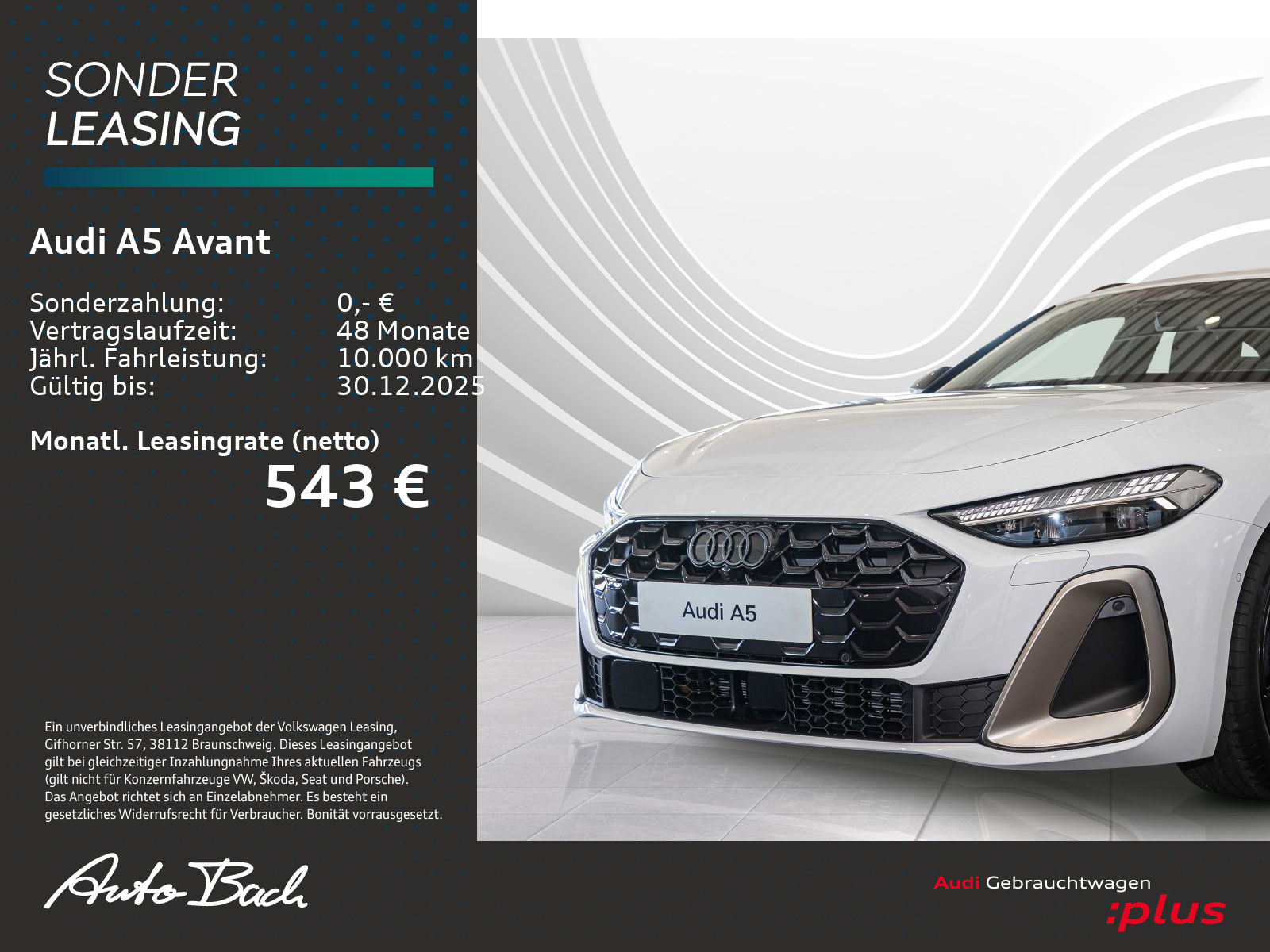 Komfortmittelarmlehne vorn, Audi drive select, Funktionspaket Basis ( Nur für Audi ), Audi virtual cockpit plus, Scheibenwischerarme-/Blätter Standard, Nichtraucherausführung, Tagesfahrlicht mit Assistenzfahrlicht u.Coming- u. Leaving-home Funktion automatisch, Riemenstartergenerator RSG 48V 110-250 A, Einton-Signalhorn, Schlüssel für Schließsystem mit Fernbedienung, Notbremsassistent vorn, Navigationsgerät-High, Reifendruck-Kontrollanzeige, Elektrische Luftzusatzheizung, Wegfahrsperre elektronisch, "Basis", Beklebung RdW, Heckspoiler, Außenspiegel Fahrerseite asphärisch, Beifahrerseite asphärisch, Fahrzeugklassen-Differenzierung-8WH/8WK-, UWB fähiges Land und Trägerfrequenz 433,92 bis 434,42Mhz, Abgaskonzept, WLTP3 M1, N1-I//EU6EA, Airbags vorn, Beifahrerairbag deaktivierbar, Kindersicherung, elektrisch betätigt, Wärmeschutz- und Akustikverglasung Frontscheibe, Gepäckraumklappe elektrisch öffnend und schließend, Kennzeichenträger hinten (ECE), Netztrennwand, Modellkennzeichnung am Heck, Aufkleber/Schilder, englisch-deutsch, Lenkradapplikation Chromoptik, S-Emblem,Lenkradgriffe perforiertes Leder und Kontrastnaht, Ausweichassistent und Abbiegeassistent vorn, Kindersitzbefestigung i-Size auf der Beifahrerseite und i-Size und Top Tetherauf den äußeren Fondsitzen, Head-up-Display, S tronic, AdBlue-Tank, Serienkraftstoff-Erstbefüllung, quattro, Einbauteile f.4 Zyl.Motore, Verbandmaterial mit Warndreieck und Warnweste, Radschrauben Standard, Sitzbelegungserkennung, Reifenreparaturset, spezielles Typschild EU, Standard-Klimazonen, Bordliteratur in Deutsch, Fußmatten vorn und hinten, Hinterachse "Standard", Kraftstoffbehälter, Mit spez.Schilder/Aufkleber/ Sicherheitszertifikate für Deutschland, Mild-Hybrid, Mit speziellem Aufkleber, Gewichtsklasse Vorderachse Gewichtsbereich 10, Kraftstoffsystem Diesel, Fertigungsablauf Standard, Instrumenteneinsatz, Anzeige in KM/H, 4 Zyl.Dieselmotor 2,0L Aggr. 05L.A, Digitaler Radioempfang, Kamerabasierte Verkehrszeichenerkennung, Serviceanzeige 30000 km oder 2 Jahre ( variabel ), Batterie/Generator Kapazität Standard, Steuerung SWIN, Linkslenker, Verkehrszeichenbasierter Geschwindigkeitsbegrenzer, Variant/Avant, Batterie 380A (68Ah), Datenmodul Europa, Dieselmotor, Audi connect Notruf & Service mit Audi connect Remote & Control, Audi connect Navigation & Infotainment (fähig), Reifen 245/40 R19 98Y xl, Akustisches Fahrzeug-Warnsystem, quattro mit ultra Technologie, Ländergruppe A, Räder der Audi Sport / Quattro GmbH, FOD Funktionen online verfügbar, Normal-Lackierung, Abwicklung Serie, Regionscode " ECE " für Radio, Aufmerksamkeits- und Müdigkeitserkennung, 4-Zyl.Turbodieselmotor 2,0 L/150 KW(4V) TDI, Common-Rail Grundmotor: T6F/T98/T48/T4T/T1T/T1H, Typprüfland Deutschland, Ausstattung 1, Audi AG, Rechtsverkehr, Serienqualität, Landesverkaufsprogramm Deutschland, Interieurausstattung 13, Assistenzpaket Schutz- und Warnsysteme plus, Assistenzpaket Fahren und Parken plus, MMI experience pro, Klimatisierungspaket, Komfortpaket plus, Telefonablage mit induktiver Ladefunktion und Mobilfunk-Koppelantenne, Einparkhilfe plus mit Distanzanzeige, Einstiegs-LED mit Logoprojektion vorn, 3-Zonen-Komfortklimaautomatik, Seitenairbags vorn und hinten mit Kopfairbagsystem und Interaktionsairbag vorn, Sonnenschutzverglasung abgedunkelt, Kopfstützen vorn, Insassenerkennung im Fond, Dekoreinlagen Aluminium matt gebürstet mit Linearprägung anthrazit, Fensterzierleisten und Anbauteile dunkel, Innenspiegel automatisch abblendend, Sitzheizung vorn und hinten, Dachreling Schwarz, Vordersitze elektrisch einstellbar, Stoßfänger S line, Digitaler Schlüssel, Scheibenbremsen hinten, 17 Zoll, Bremssättel rot, Lenkradeinstellung elektrisch, Sportlederlenkrad, 3-Speichen, oben und unten abgeflacht mit Multifunktion und Schaltwippen, Scheibenbremsen vorn, 17 Zoll, Bremssättel rot, Projektionsleuchte in den Außenspiegeln, Anhängevorrichtung mechanisch schwenkbar, S-Sportfahrwerk mit Dämpferregelung, Endrohrblenden verchromt dunkel, Audi Neuwagen-Reifengarantie, Interieur S mit Sportsitzen, Mikrofaser Dinamica/Leder-Kombination schwarz, Farbnähte rot Audi Sport GmbH, Steuerungsnummer 8, Akustikverglasung Türscheiben vorn, Einstiegsleisten mit Aluminiumeinlegern vorn, beleuchtet, S-Schriftzug, Pedalerie und Fußstütze in Edelstahl, Garagentoröffner, USB-Schnittstellen mit erhöhter LadeleistungDie angegebenen Verbrauchsangaben beziehen sich auf WLTP-Werte. Zwischenverkauf und Irrtümer für dieses Angebot sind ausdrücklich vorbehalten. Ausschlaggebend sind einzig und allein die Vereinbarungen in der Auftragsbestätigung oder im Kaufvertrag. Den genauen Ausstattungsumfang, die genauen Kilometer und den Verkaufspreis erhalten Sie von unserem Verkaufspersonal. Bitte kontaktieren Sie uns.