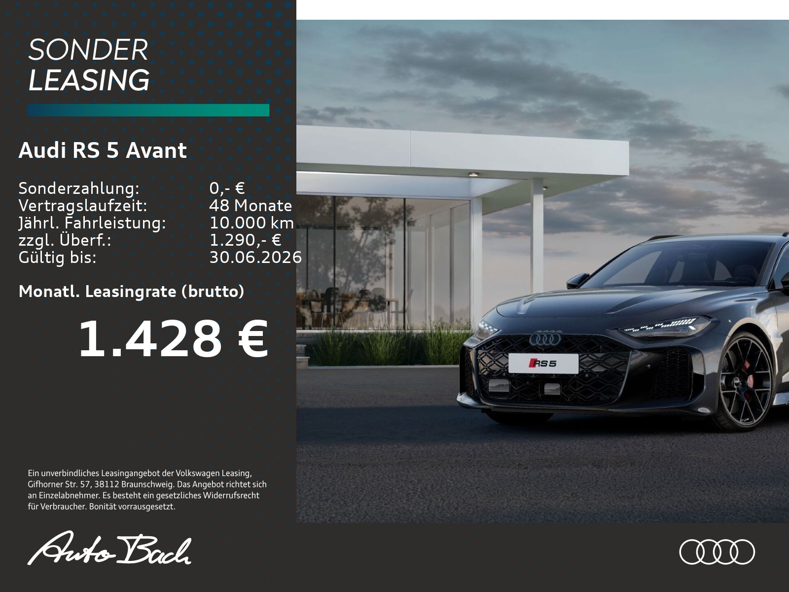 Auftrags-Nr. V_ACIQ17 DZ, schwarz-schwarz-expressrot /schwarz-schwarz/schwarz/schwarz, Anhängevorrichtung mechanisch schwenkbar, Lenkradeinstellung elektrisch, Sitzheizung vorn und hinten, Dekoreinlagen Carbon Mikro-Köper Struktur, Bang & Olufsen Premium Soundsystem mit 3D-Klang, Telefonablage mit induktiver Ladefunktion und Mobilfunk-Koppelantenne, Betriebserlaubnis Nachtrag, Räder, 6-Doppelspeichen, schwarz metallic, 10,0|10,5J x 21, Reifen 285/30 R21, Komfort-Standklimatisierung, Mobilfunk-Signalverstärker Typ 1, Head-up-Display, Bremssättel rot lackiert, Audi Sport Paket, Tech pro, Interieur RS mit Sportsitzen plus, belüftet, Leder schwarz mit roten Akzenten, MMI experience plus mit Bang & Olufsen Premium Soundsystem, Sonnenschutzverglasung abgedunkelt, Ambiente-Lichtpaket pro, Akustikverglasung Türscheiben vorn, Audi Neuwagen-Reifengarantie, Steuerungsnummer 8, Daytonagrau Perleffekt, Anschlussgarantie 3 Jahre max. 100.000 km, Tech pro, Fertigungsablauf Standard, Gewichtsklasse Vorderachse Gewichtsbereich 4, Hybrid-Antriebssystem PHEV, Mit speziellem Aufkleber, Mit spez.Schilder/Aufkleber/ Sicherheitszertifikate für Deutschland, Kraftstoffbehälter, Hinterachse "Standard", RS-Sportabgasanlage, RS-Sportabgasanlage, Fußmatten mit RS-Schriftzug, Fußmatten mit RS-Schriftzug, Bordliteratur in Deutsch, Standard-Klimazonen, Standard-Klimazonen, Kraftstoffsystem Otto-Direkteinspritzung (FSI), spezielles Typschild EU, Reifenreparaturset, Sitzbelegungserkennung, Projektionsleuchte in den Außenspiegeln, RS-Stahlbremse hinten mit Bremssätteln rot, RS-Stahlbremse vorn mit Bremssätteln rot glänzend, Radschrauben diebstahlhemmend, Radschrauben diebstahlhemmend, Verbandmaterial mit Warndreieck und Warnweste, Einbauteile f.6 Zyl.Motor, quattro, Serienkraftstoff-Erstbefüllung, E-Motor (Hybrid) Systemleistung 470KW Aggr.0EE.B, Digitaler Schlüssel, Audi drive select, Aufkleber/Schilder, englisch-deutsch, RS-Sportfahrwerk mit geregeltem 2-Ventil-Dämpfer, RS-Sportfahrwerk mit geregeltem 2-Ventil-Dämpfer, Modellkennzeichnung am Heck, Sportkonturlenkrad, 3-Speichen, oben und unten abgeflacht mit Multifunktion, Schaltwippen und Bediensatelliten, Kennzeichenträger hinten (ECE), Kindersitzbefestigung i-Size-konform auf Beifahrerseite und äußeren Fondsitzen, Top Tether für äußere Fondsitze, Netztrennwand, Netztrennwand, Vordersitze elektrisch einstellbar, Dachreling Schwarz, Dachreling Schwarz, Sitzbelüftung und Massagefunktion vorn, Gepäckraumklappe elektrisch öffnend und schließend, Ausweichassistent und Abbiegeassistent, Wärmeschutz- und Akustikverglasung Frontscheibe, Komfortschlüssel mit Safelock, Innenspiegel automatisch abblendend, Airbags vorn, Beifahrerairbag deaktivierbar, Abgaskonzept, WLTP3 M1, N1-I//EU6EB, Fensterzierleisten und Anbauteile dunkel, Fensterzierleisten und Anbauteile dunkel, UWB fähiges Land und Trägerfrequenz 433,92 bis 434,42Mhz, Fahrzeugklassen-Differenzierung-8WH/8WK-, RS-Dachkantenspoiler, Außenspiegel Fahrerseite asphärisch, Beifahrerseite asphärisch, Beklebung RdW, RS-Exterieurumfänge schwarz glänzend, Insassenerkennung im Fond, Kopfstützen vorn, Kopfstützen vorn, Seitenairbags vorn mit Kopfairbagsystem und Interaktionsairbag vorn, Komfortmittelarmlehne vorn, RS-Embleme mit Lenkradkranz Leder perforiert und 12-Uhr-Markierung Leder, Außenspiegelgehäuse schwarz, Spurverlassenswarnung mit Notfallassistent, Türgriffe schwarz, Dachhimmel Stoff schwarz, Außenspiegel elektrisch einstell-, beheizbar und anklappbar, beidseitig automatisch abblendend, Anhebung der Höchstgeschwindigkeit bis zu 285 km/h, Anhebung der Höchstgeschwindigkeit bis zu 285 km/h, Ladekabel Mode 3 für öffentliches Laden bis zu 22 kW (AC), Spurwechsel- und Ausstiegswarnung, Querverkehrassistent hinten und Abbiegeassistent hinten, Diebstahlwarnanlage, Elektrische Luftzusatzheizung, Interieurelemente oben und unten mit Kontrastnaht, Reifendruck-Kontrollsystem, Navigationsgerät-High, Proaktiver Insassenschutz Front, Seite und Heck, Matrix-Funktion, Matrix-Funktion, Lendenwirbelstütze pneumatisch einstellbar mit Massagefunktion für die Vordersitze, Notbremsassistent vorn und hinten, Abgedunkelte Matrix LED-Scheinwerfer mit dynamischer Lichtinszenierung und dynamischem Blinklicht, Adaptiver GeschwindigkeitsassistentDie angegebenen Verbrauchsangaben beziehen sich auf WLTP-Werte. Zwischenverkauf und Irrtümer für dieses Angebot sind ausdrücklich vorbehalten. Ausschlaggebend sind einzig und allein die Vereinbarungen in der Auftragsbestätigung oder im Kaufvertrag. Den genauen Ausstattungsumfang, die genauen Kilometer und den Verkaufspreis erhalten Sie von unserem Verkaufspersonal. Bitte kontaktieren Sie uns.