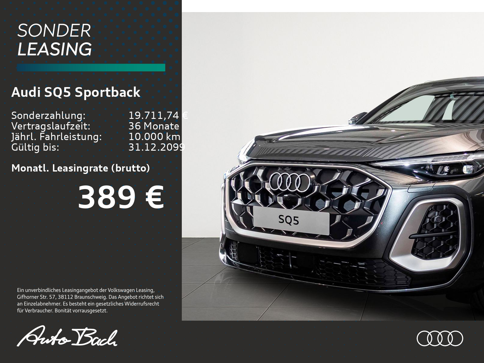 Auftrags-Nr. AL6340 WZ, schwarz-schwarz-stahlgrau/ schwarz-schwarz/schwarz/schwarz, Vorbereitung für Anhängevorrichtung, Erhöh.der Serienkraftstofferstbefüllung, Adaptives S-Luftfederfahrwerk, Panorama-Glasdach, Dachreling Aluminiumoptik, Sitzbelüftung vorn, Komfortschlüssel mit Safelock, Räder Audi Sport, Vielspeichen-S, schwarz metallic, glanzgedreht, 8,5Jx21, Reifen 255/40 R21, Außenspiegelgehäuse in Wagenfarbe, Diebstahlwarnanlage, Reifendruck-Kontrollsystem, Ein- und Ausstiegs-Komfortbeleuchtung, Telefonablage mit induktiver Ladefunktion und Mobilfunk-Koppelantenne, Memory-Funktion für den Fahrersitz und die Außenspiegel, Betriebserlaubnis Nachtrag, LTE-Unterstützung für Audi phone box, Bremssättel, farbig, Tech pro, Interieur S mit Sportsitzen, Leder schwarz, MMI experience pro, Interieurapplikationen Vanadiumoptik, Sonnenschutzverglasung abgedunkelt, Ambiente-Lichtpaket pro, Einführungsvolumen, Audi Neuwagen-Reifengarantie, Steuerungsnummer 8, Anlaufvariante I, Daytonagrau Perleffekt, Fertigungsablauf Standard, Gewichtsklasse Vorderachse Gewichtsbereich 9, Mild-Hybrid, Mit speziellem Aufkleber, Mit spez.Schilder/Aufkleber/ Sicherheitszertifikate für Deutschland, Kraftstoffbehälter, Standardabgasanlage, Standardabgasanlage, Fußmatten vorn und hinten, Bordliteratur in Deutsch, Standard-Klimazonen, Standard-Klimazonen, Kraftstoffsystem Otto-Direkteinspritzung (FSI), spezielles Typschild EU, Reifenreparaturset, Sitzbelegungserkennung, Projektionsleuchte in den Außenspiegeln, Scheibenbremsen vorn, 18 Zoll, Bremssättel rot, S-Schriftzug, Radschrauben Standard, Radschrauben Standard, Verbandmaterial mit Warndreieck und Warnweste, Einbauteile f.6 Zyl.Motor, quattro, Sportlederlenkrad, 3-Speichen, oben und unten abgeflacht mit Multifunktion und Schaltwippen, Sportlederlenkrad, 3-Speichen, oben und unten abgeflacht mit Multifunktion und Schaltwippen, Lenkradeinstellung elektrisch, Scheibenbremsen hinten, 17 Zoll, Bremssättel rot, Digitaler Schlüssel, Audi drive select, Stoßfänger S-Modell, Aufkleber/Schilder, englisch-deutsch, Aufkleber/Schilder, englisch-deutsch, Modellkennzeichnung am Heck, Fahrzeugklassen-Differenzierung -FYS-, Kennzeichenträger hinten (ECE), Kindersitzbefestigung i-Size auf der Beifahrerseite und i-Size und Top Tether auf den äußeren Fondsitzen, Netztrennwand, Vordersitze elektrisch einstellbar, Rücksitzbank plus, Rücksitzbank plus, Sitzheizung vorn und hinten, Komfortöffnung Gepäckraumklappe, Ausweichassistent und Abbiegeassistent vorn, Wärmeschutz- und Akustikverglasung Frontscheibe, Innenspiegel automatisch abblendend, Airbags vorn, Beifahrerairbag deaktivierbar, Abgaskonzept, EU6 EA Lambda=1 WLTP3 M1, N1-I, Fensterzierleisten Aluminiumoptik, Fensterzierleisten Aluminiumoptik, UWB fähiges Land und Trägerfrequenz 433,92 bis 434,42Mhz, Dachkantenspoiler, Außenspiegel Fahrerseite asphärisch, Beifahrerseite asphärisch, Ganzschutzhaube (System Konfektionshaube), Dekoreinlagen Aluminium matt gebürstet mit Linearprägung anthrazit, Insassenerkennung im Fond, Kopfstützen vorn, Kopfstützen vorn, Seitenairbags vorn und hinten mit Kopfairbagsystem und Interaktionsairbag vorn, Komfortmittelarmlehne vorn, Lenkradapplikation Chromoptik, S-Emblem, Lenkradgriffe perforiertes Leder und Kontrastnaht, Spurverlassenswarnung mit Notfallassistent, Dachhimmel Stoff schwarz, Außenspiegel elektrisch einstell-, beheizbar und anklappbar, beidseitig automatisch abblendend, Außenspiegel elektrisch einstell-, beheizbar und anklappbar, beidseitig automatisch abblendend, Außenspiegel elektrisch einstell-, beheizbar und anklappbar, beidseitig automatisch abblendend, Spurwechsel- und Ausstiegswarnung, Querverkehrassistent hinten und Abbiegeassistent hinten, Spurwechsel- und Ausstiegswarnung, Querverkehrassistent hinten und Abbiegeassistent hinten, Instrumententafel-Oberseite schwarz mit Kontrastnaht, Navigationsgerät-High, Proaktiver Insassenschutz Front, Seite und Heck, Matrix-Funktion, Lendenwirbelstütze pneumatisch einstellbar mit Massagefunktion für die Vordersitze, LED-Scheinwerfer plus, Notbremsassistent vorn, Adaptiver Geschwindigkeitsassistent, Digitale OLED-Heckleuchten, Scheinwerfer-Reinigungsanlage, Einton-Signalhorn, Einton-Signalhorn, Komfortpaket plus, KlimatisierungspaketDie angegebenen Verbrauchsangaben beziehen sich auf WLTP-Werte. Zwischenverkauf und Irrtümer für dieses Angebot sind ausdrücklich vorbehalten. Ausschlaggebend sind einzig und allein die Vereinbarungen in der Auftragsbestätigung oder im Kaufvertrag. Den genauen Ausstattungsumfang, die genauen Kilometer und den Verkaufspreis erhalten Sie von unserem Verkaufspersonal. Bitte kontaktieren Sie uns.
