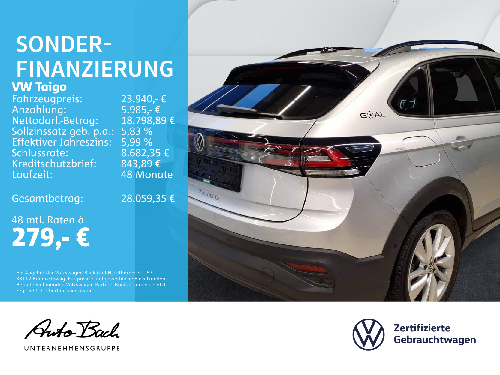 Taigo 1.0 TSI DSG Goal, Navi, LED, App-Connect, Klima, Sitzheizung